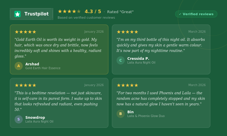 Our customers love the transformation — from radiant skin to healthier, stronger hair. Discover why Gold Earth is becoming a trusted name in natural beauty.